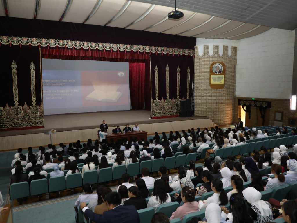 Tadbir “Jaholatga qarshi ma’rifat bilan kurash!” hamda “Inson qadri va huquqlarining ustuvorligi – taraqqiyot poydevori” mavzulari doirasida o‘tkazildi.