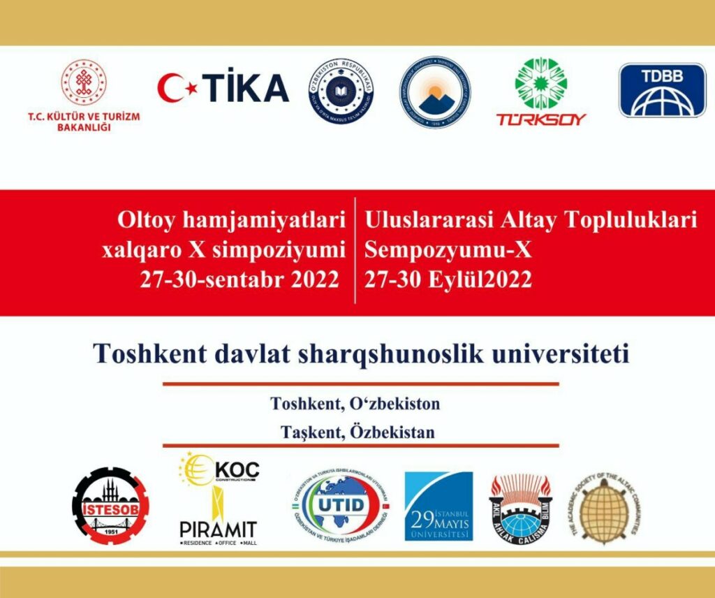 Toshkent davlat sharqshunoslik universitetida 2022-yil 27-30-sentabr kunlari “Oziq-ovqat va ovqatlanish madaniyati” mavzusida Oltoy hamjamiyatlari xalqaro X simpoziumi o’tkaziladi.