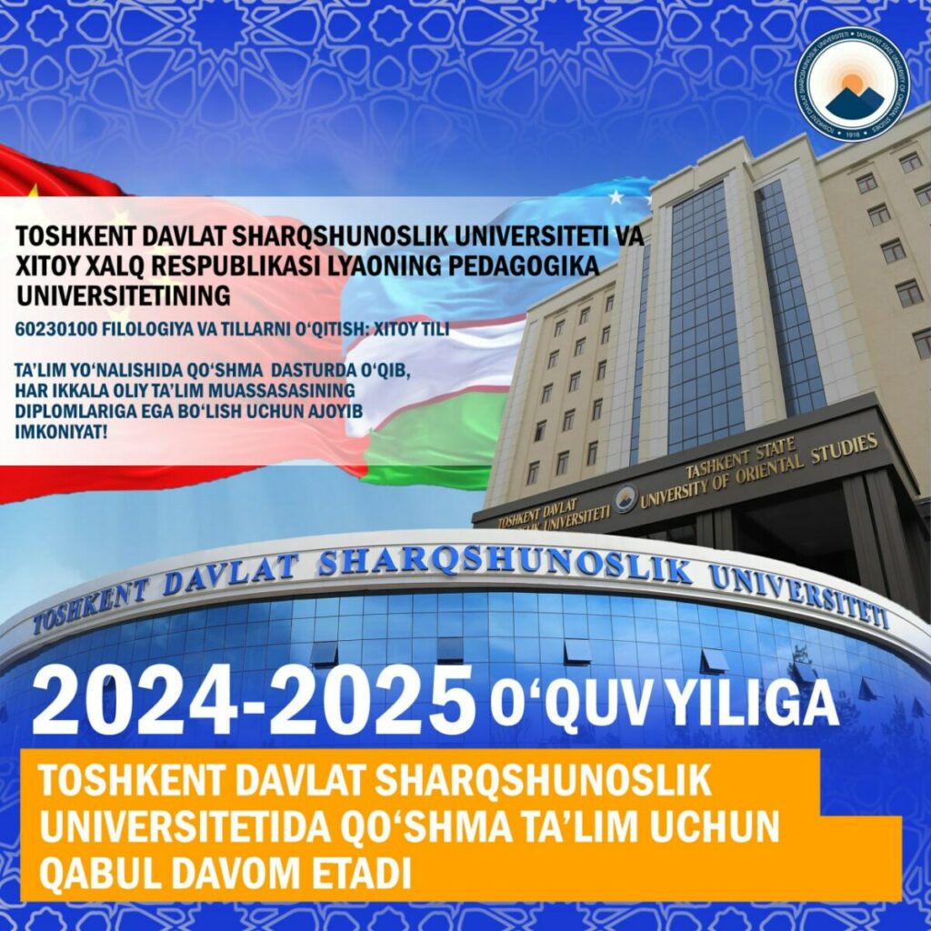 Toshkent davlat sharqshunoslik universitetida qo‘shma ta’lim uchun 2024-2025-o‘quv yiliga qabul davom etadi