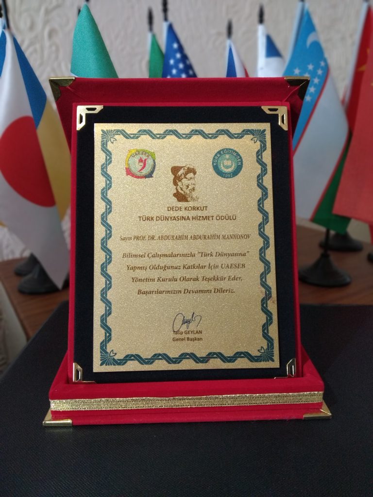 2018 yilning 7-8 dekabr kunlari Turkiyaning Antaliya shahrida “Turk dunyosi: ta’lim va ijtimoiy sohalar” mavzusida 2-xalqaro konferensiya bo‘lib o‘tdi. Konferensiyada Toshkent davlat sharqshunoslik institutidan rektor f.f.d., prof. A.Mannonov va o‘qituvchi f.f.d. P.Kenjayeva o‘zining ilmiy ma’ruzalari bilan ishtirok etdi. Konferensiyada 800 ta tadqiqotchi- olimlar ishtirok etishdi. 2 kun davom etgan xalqaro konferensiyada ta’lim va ijtimoiy sohalardagi yangiliklar, o‘zgarishlar haqida ilmiy ma’ruzalar qilindi. Konferensiyada yuqori saviyadagi ma’ruza ishtirokchilari uchun alohida mukofotlar ta’sis etildi. 800ta ishtirokchidan 25tasi uchun “Dada Qo‘rqut” mukofoti berildi. O‘zbekistonlik olimlar TDShI rektori A.Mannonov va TDShI o‘qituvchisi f.f.d. P.Kenjayeva ham “Dada Qo‘rqut” mukofoti bilan taqdirlandi.