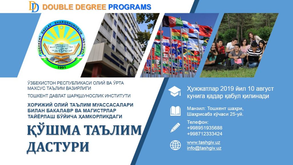 Xorijiy oliy ta’lim muassasalari bilan bakalavr tayyorlash bo’yicha hamkorlikdagi qo’shma ta’lim dasturlari imtihonlari kuni aniq bo’ldi (DOUBLE DEGREE)