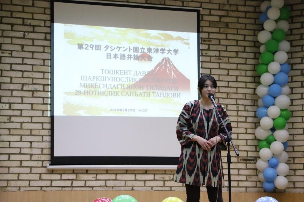 Toshkent davlat sharqshunoslik instituti Madaniyat saroyida Yaponshunoslik fakulteti talaba-yoshlari o‘rtasida har yili ana’naviy tarzda o‘tkaziladigan «Yapon tilida notiqlik san’ati» tanlovi  bo‘lib o‘tdi. Joriy yilda ushbu tanlov 29-marotaba tashkil etildi.Tadbirda institutning Xalqaro hamkorlik bo‘yicha prorektori Elyor Maxmudov so‘zga chiqib O‘zbekiston-Yaponiya aloqalari turli sohalarda yangi bosqichga chiqganini alohida ta’kidlab o‘tdi va barcha talabalarga nafaqat institut bosqichida balki Respublika va MDX davlatlari o‘rtasida bo‘lib o‘tadigan tanlovlarida ham yuqori natijalarga erishishlariga tilakdosh bo‘ldi.  Mazkur «Yapon tilida notiqlik san’ati» tanlovida 18 nafar talaba-yoshlar o‘zlari tanlagan mavzular bo‘yicha yapon tilida qanchalik ravon va to‘g‘ri so‘zlashish san’atiga ega ekanliklarini ko‘rsatib berdilar. Tanlovda O‘zbekiston-Yaponiya Markazidan Yamasaki Noriko va Sinkoi Xidexiro, O‘zbekiston-Nagoya markazidan Imamura Eiti, va O‘zbekiston Yuridik Universitetidan Nishidzaka Syoxey xay’at a’zolari sifatida ishtirok etdilar. Tadbir ko‘tarinki ruhda tashkil etildi va tanlov yakunida 1, 2 va 3-o‘rinni egallagan ishtirokchilarga respublika miqyosida o‘tkaziladigan «Yapon tilida notiqlik san’ati» tanloviga yo‘llanma berildi.